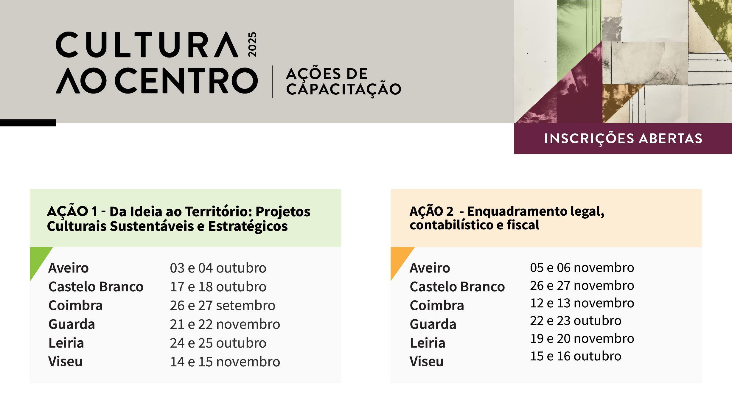 Dirigida especificamente a estes agentes da região Centro, a iniciativa visa consolidar competências, promover a qualificação do tecido associativo e apoiar a definição de estratégias culturais sustentáveis, participativas e coerentes com as especificidades do território.