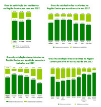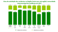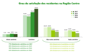 O inquérito mostra que 7,5% dos residentes estão “muito satisfeitos”, 70% “satisfeitos”, 13% “não muito satisfeitos” e 10% “nada satisfeitos”. Face aos anos anteriores, destaca-se o acréscimo significativo da percentagem de inquiridos que se consideram “satisfeitos” e, simultaneamente, o decréscimo dos “nada satisfeitos” e dos “não muito satisfeitos”. Estes são os melhores resultados das quatro edições deste inquérito efetuado para a região Centro, com 77% dos residentes globalmente satisfeitos, contra 69% em 2015, 58% em 2014 e 61% em 2013. Este valor supera a média obtida pelo Eurobarómetro (inquérito realizado à escala europeia) para Portugal (67%), aproximando-se da avaliação média dos cidadãos europeus (82%).