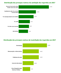 Do ponto de vista qualitativo foi ainda possível identificar alguns dos principais fatores que os residentes na Região Centro associam à sua satisfação ou insatisfação. Dois dos principais motivos causadores de satisfação ou insatisfação têm mantido alguma estabilidade ao longo das várias vagas deste inquérito anual e prendem-se com as situações de emprego e saúde. São ainda referidos aspetos relacionados com o local de residência, ambiente familiar, qualidade de vida, rendimentos auferidos ou a situação do país.