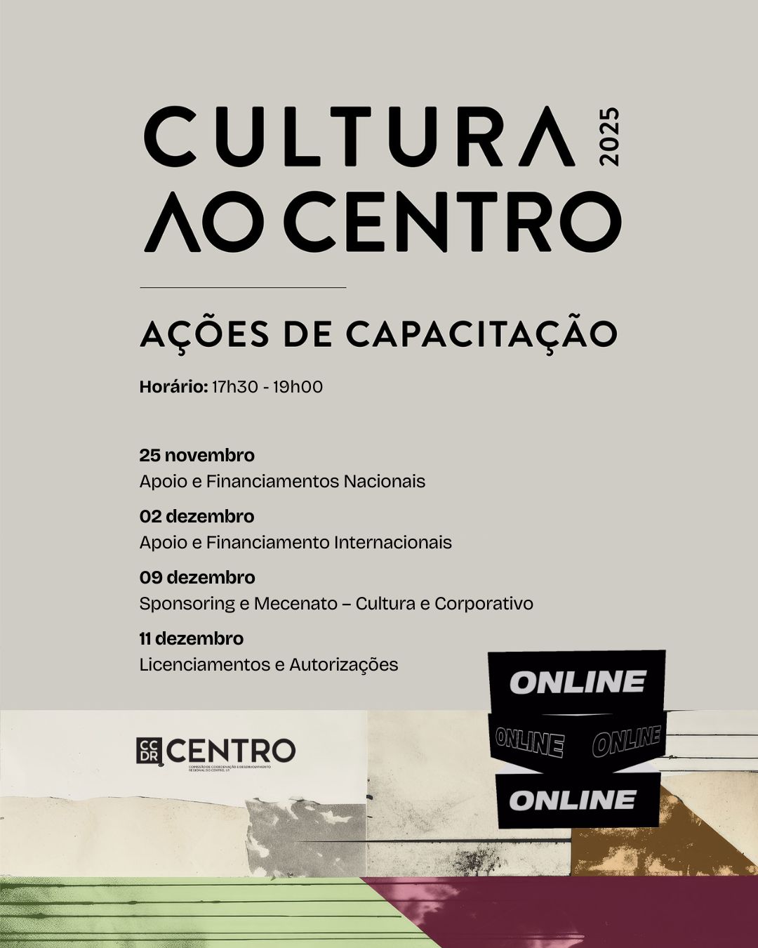 CCDR Centro reforça ações de capacitação, agora em formato online, no âmbito do CULTURA AO CENTRO 2025