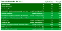 No terceiro trimestre de 2022, o Produto Interno Bruto registou um crescimento homólogo real de 4,9%, justificado pelo contributo positivo da procura interna e da procura externa líquida. Esta variação homóloga reflete, no entanto, uma desaceleração face ao trimestre anterior e ao trimestre homólogo de 2021. A taxa de desemprego nacional aumentou para os 5,8%. O nível de preços cresceu 9,1% face ao trimestre homólogo, sendo o crescimento mais elevado desde o quarto trimestre de 1992. A confiança dos consumidores tornou-se ainda mais negativa. O indicador de clima económico manteve-se positivo, mas continuou a desacelerar. O euro sofreu a maior desvalorização homóloga trimestral face ao dólar desde o terceiro trimestre de 2015.
