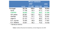 A coesão regional, avaliada pelas assimetrias regionais do PIB por habitante, diminuiu face a 2018, uma vez que aumentou a diferença entre o maior e o menor valor do PIB por habitante observado nas sete regiões portuguesas (em 2018, esta diferença era de 8.875 euros, tendo passado para 9.185 euros, em 2019).